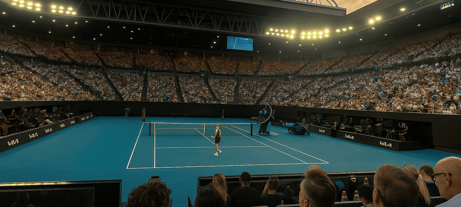 - Melbourne Park layout: Integrated precinct with clear guest flow from VIP entry to court-side hospitality zones.