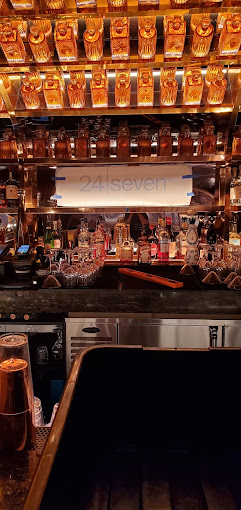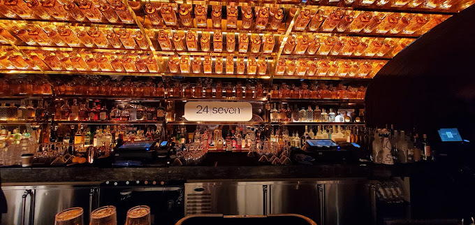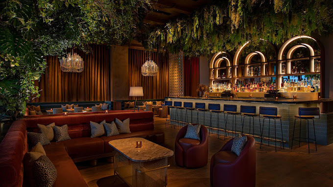 The interior of the lounge is captivating with its wooden barrel-vaulted ceilings, evoking the feel of hidden chambers where whiskey might have been concealed during the bootlegger era. As you soak in the seductive ambiance, you’ll be surrounded by plush banquettes, locally crafted vintage chandeliers, and rich jewel-toned velvet sofas. The atmosphere is further enhanced by a gleaming copper DJ stand and a bar adorned with mirrored-copper elements and backlit whiskey bottles, adding a touch of opulence to the overall experience.