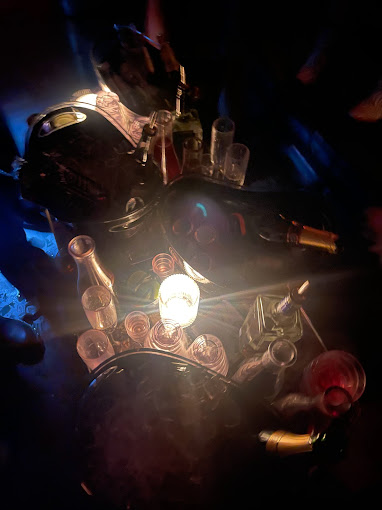 The upscale and lavish ambiance is further elevated by vintage chandeliers carefully crafted by local artisans, a shiny copper DJ stand, and a bar adorned with mirrors and copper elements, beautifully illuminated by a mesmerizing display of backlit whiskey bottles. The thoughtfully curated music selection, blending various genres, ensures that the crowd stays entertained well into the night.