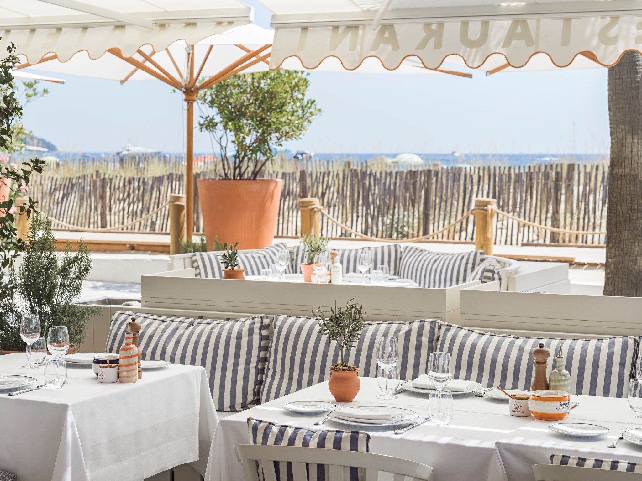 For those seeking complete comfort and an escape from the outside world, Bagatelle offers the option to reserve a cabin. Claim your double bed, bask in the warm sunshine, and let your worries melt away. Alternatively, savor an al fresco lunch while seated under a parasol, feeling the soft sand beneath your toes and the gentle lapping of water at your feet. Bagatelle Beach Club in St. Tropez presents an idyllic setting for an unforgettable beach experience.